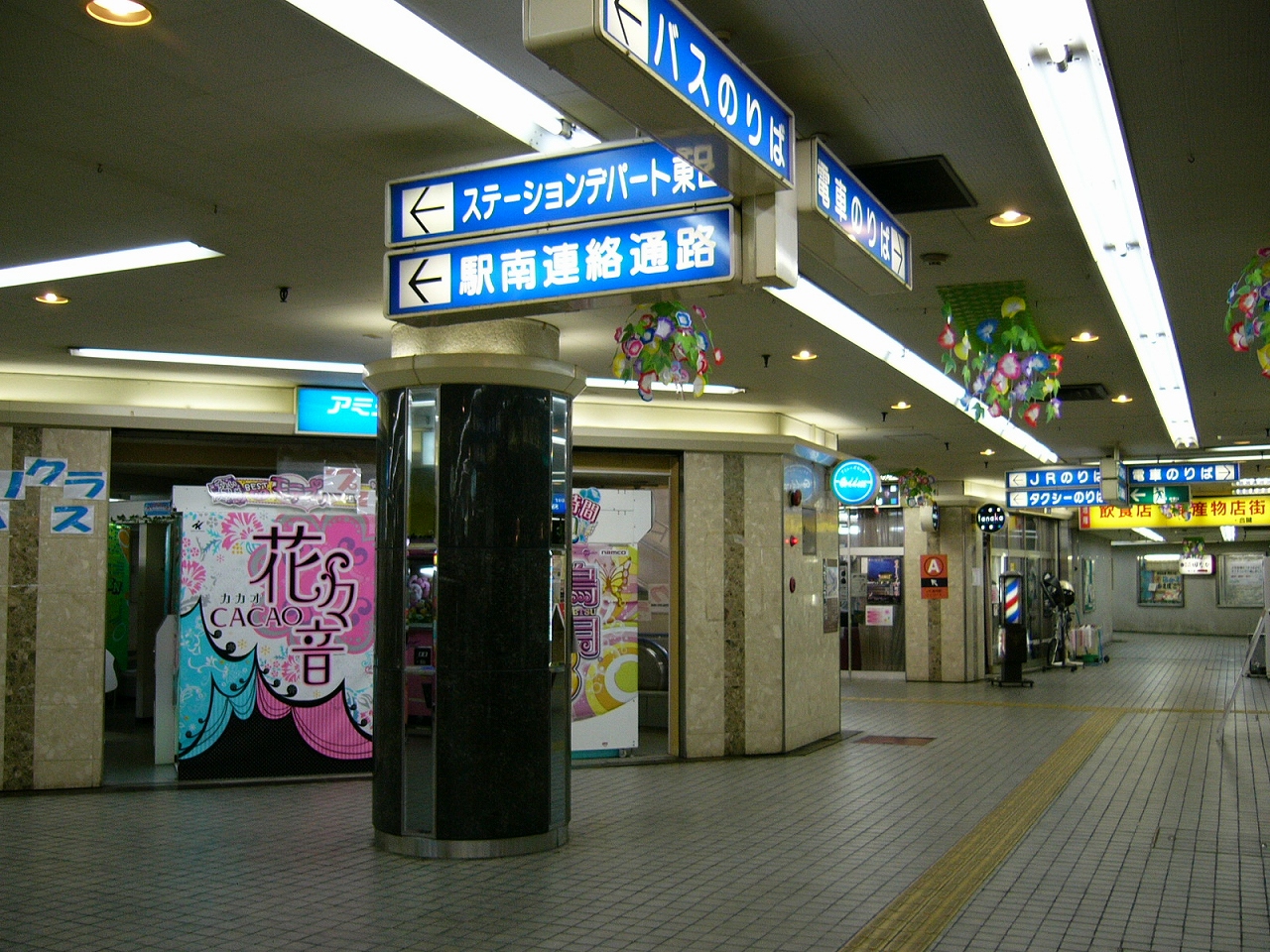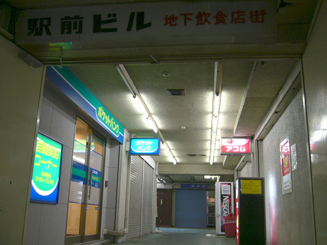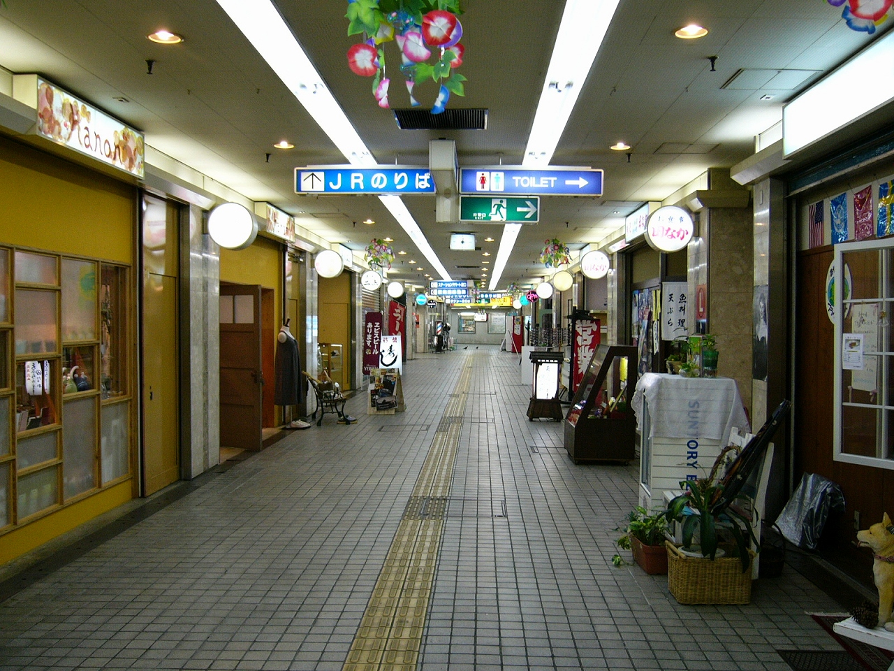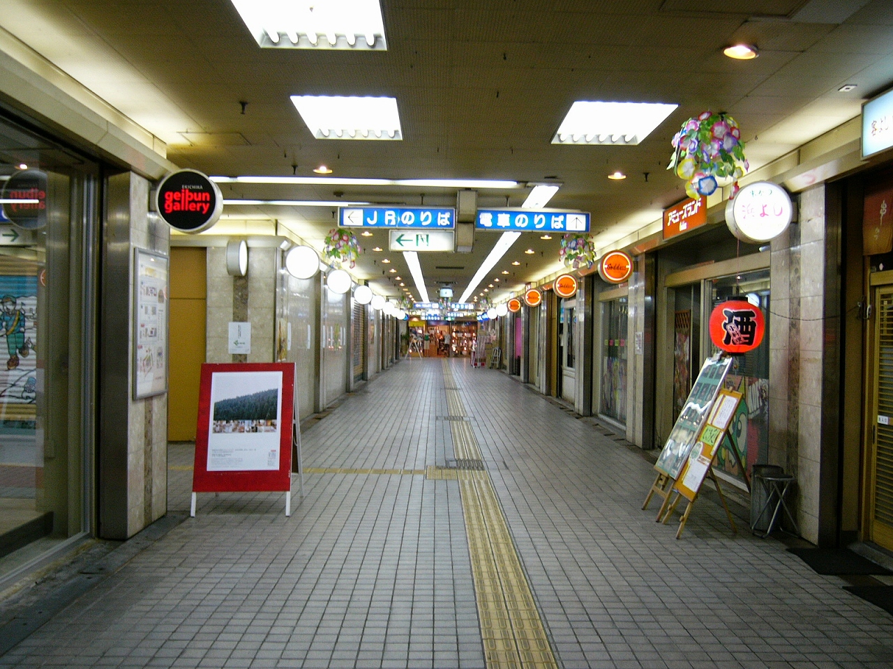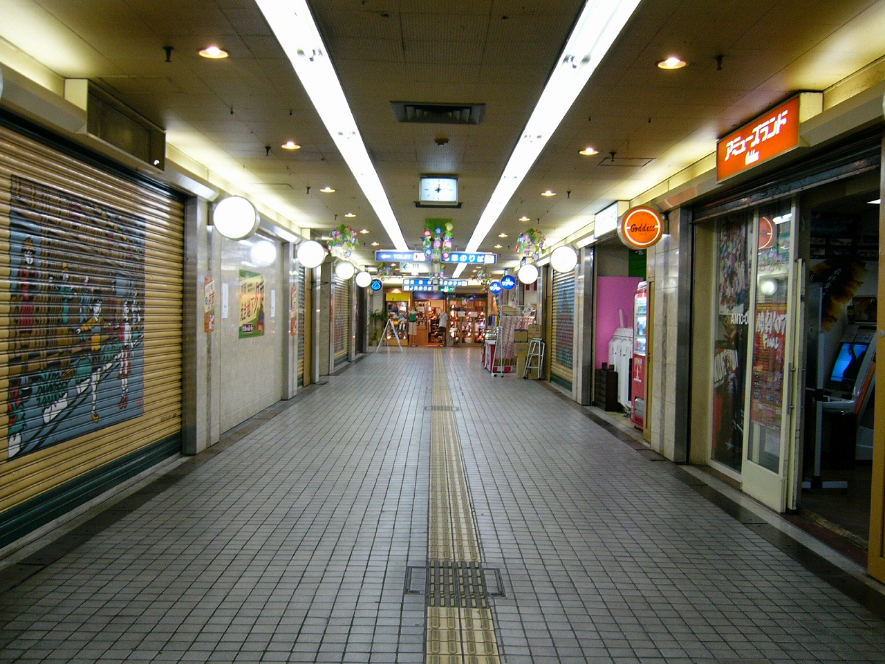 駅前の広いアーケード通りは建物が新しく入れ替わっていて静かなのだが、ここは地下街がすごい。近代化以後ほぼそのままなものの、ここにしては規模が大きく驚かされた。お盆だからかシャッターが多かったものの、別の日に来ると人通りも多く、店にはむろんお客が入っている。装い新しいテナントもしばしば見られて、地下は今も当然のように活躍していた。