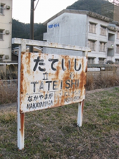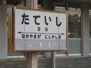 駅名標には石仏をかすれて描き、名所案内も磨崖仏など石仏のものばかりで、修験者立ち入るような人里離れた険しいところが、ここのどこかにあるのを想わせた。立石という地名そんなところから来たと思えた。じっさい、立石峠の方にある山容は、つんつんしたピークがいくつも立ち並ぶ、見るからに険しいもので、そんな山々が、レールの先に立ちはだかっている。