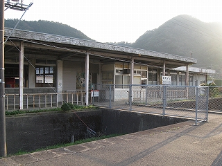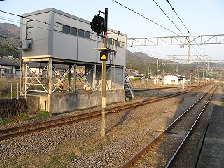 杵築、大分方面。信号所のような建物があった。