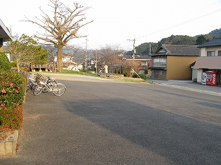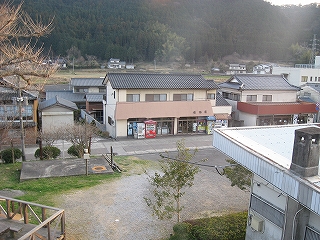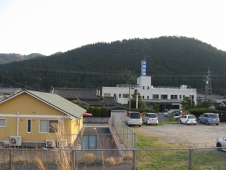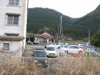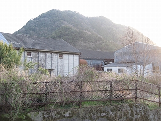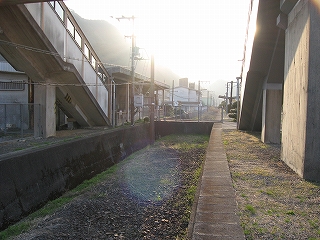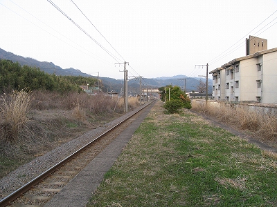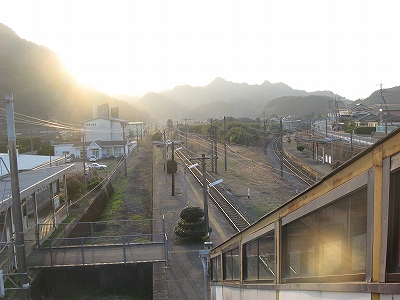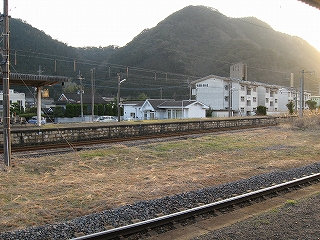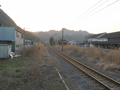 下り方駅裏の風景。ここは山と山とに挟まれたところとなっている。