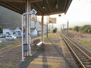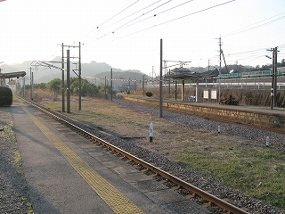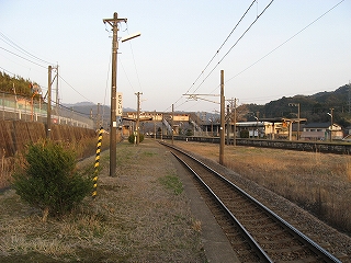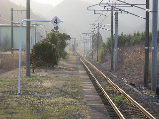 上り線と下り線。右端も一線廃止されているのがわかる。よってここは 元は2面4線という充実した施設の駅だったが、現在は2面2線となっている。