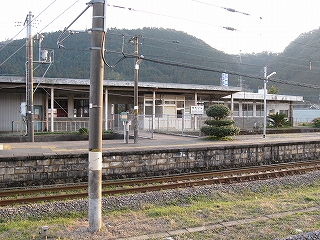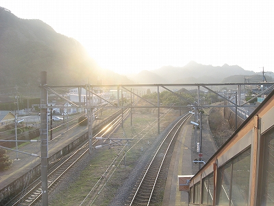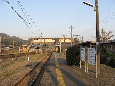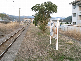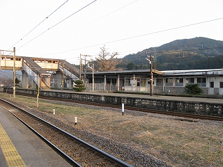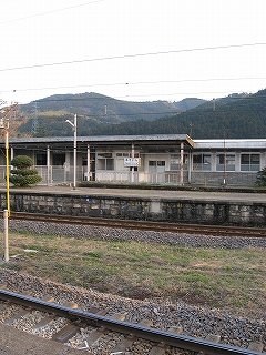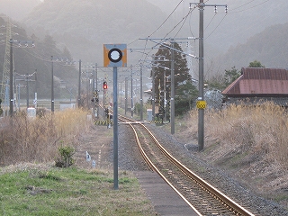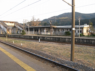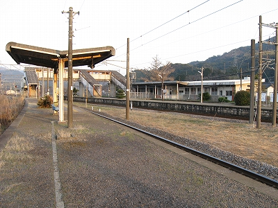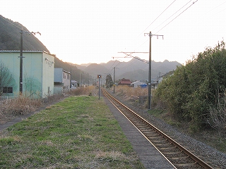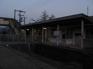 この駅前町からすると駅舎は不釣り合いなほど大きい。こんなに近代の様式を備えた有人主要駅の造りをしているのに、なぜ無人になったのだろうか、と、ことこと日の落ちていく夕しじまの中、立ちんぼうで考えた。まさか汽車時代はとうてい関係あるまい。これが建てられたのはそんなに遠くない昔で、やはりそのころは電化ももう完了していたし、立石トンネルの開通は見越されていた。それだけに、何かこの駅に、時代にうまくかみ合わない不幸が訪れたのではないかなんて思われた。