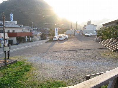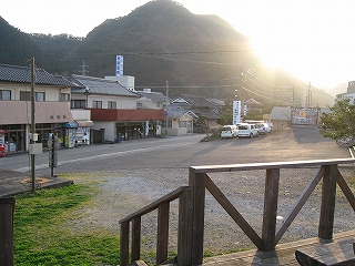 宇佐方に見た駅前広場。城山がひときわ風景に大きな影響を及ぼしている。