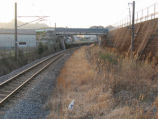 上下線にはこのように広い敷地が空いている。 下り新線開通前はこの敷地も重要だったかもしれない。