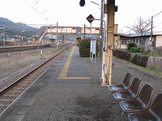 待合にて大分方。ホーム床面は砂利舗装。