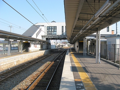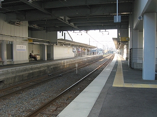 裏に出て何もないと思いきや国道1号と8号の立体分岐地だったと知る。何度も車で通ったが、まさかこんなふうにひっそりと背を向けてはいるも駅があるとは思わない。こうして目の当たりにすると通ったことがなくてもそう思うだろう。車では賑やかに思えた新しい追分もこうして徒歩で来ればあっけらかんとしていた。いつの時代も街道というのは意外にそんなものなのだろうか。賑やかだ、だったと思っていても実はそうでもなくて、今からみると荒野のように風化したものか貧弱なものとして立ち現れてくる、そういう。ときに、このジャンクションに名神のインターが絡みついてランプを形成、そう、駅に人がおらなかったとしてもおかしいことではなかった。そのうち街がないというのも、この手の理論で説明できるときがきそうだった。こういうわけで立地のポテンシャルは高く、経営的市政を動力にここが浮き名を流していたのを思い起こした。あのときの新幹線駅の一件は、空港のことと合わせても 商人として帰る地としてだけの江州らしいところのものだった。