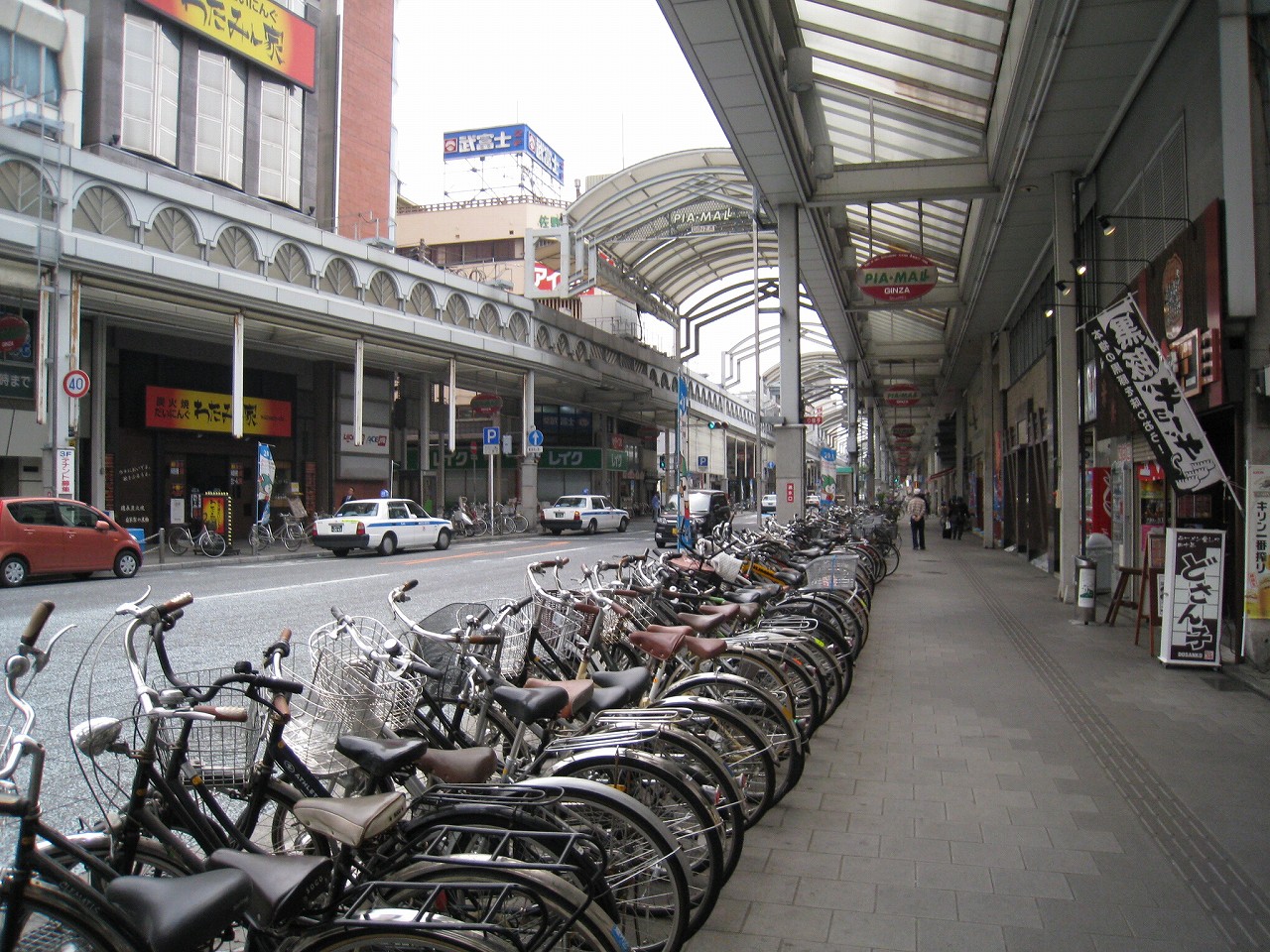 商店街を巡って駅前に近づいてアサヒビールの広告が見えると安心した。共通して受け入れられるものがなくなっていく時代だが、駅というのは日本でも変わっていないようだ。我々もいつかは 車を捨てる時代が来るかもしれない。効率だけ追究したら、前しか見なくなった、駐められないところは見向きもしなくなった、駐められても歩かなきゃいけないところは避けるようになった、足萎えの人でなくても、そういう人は多い。