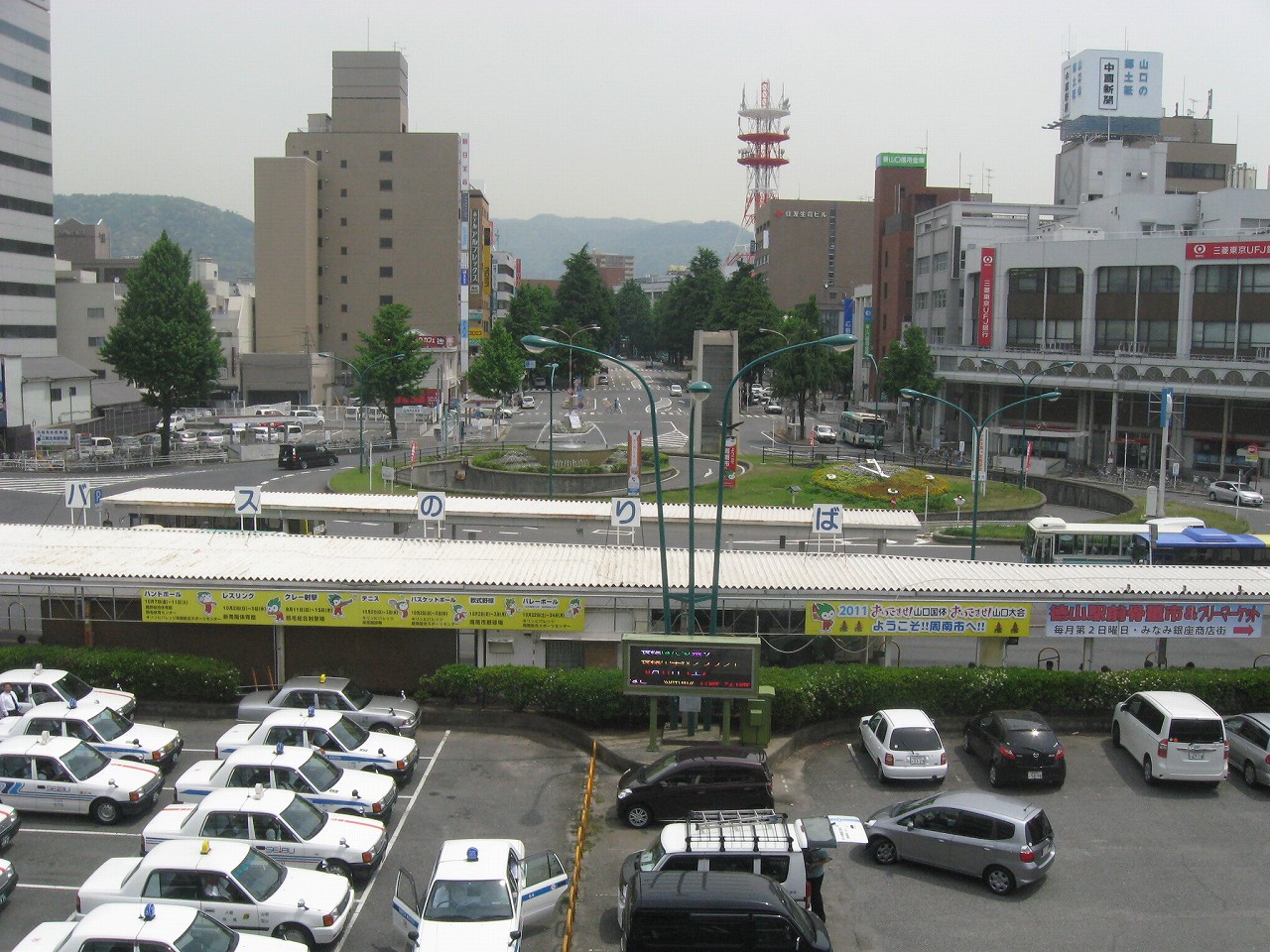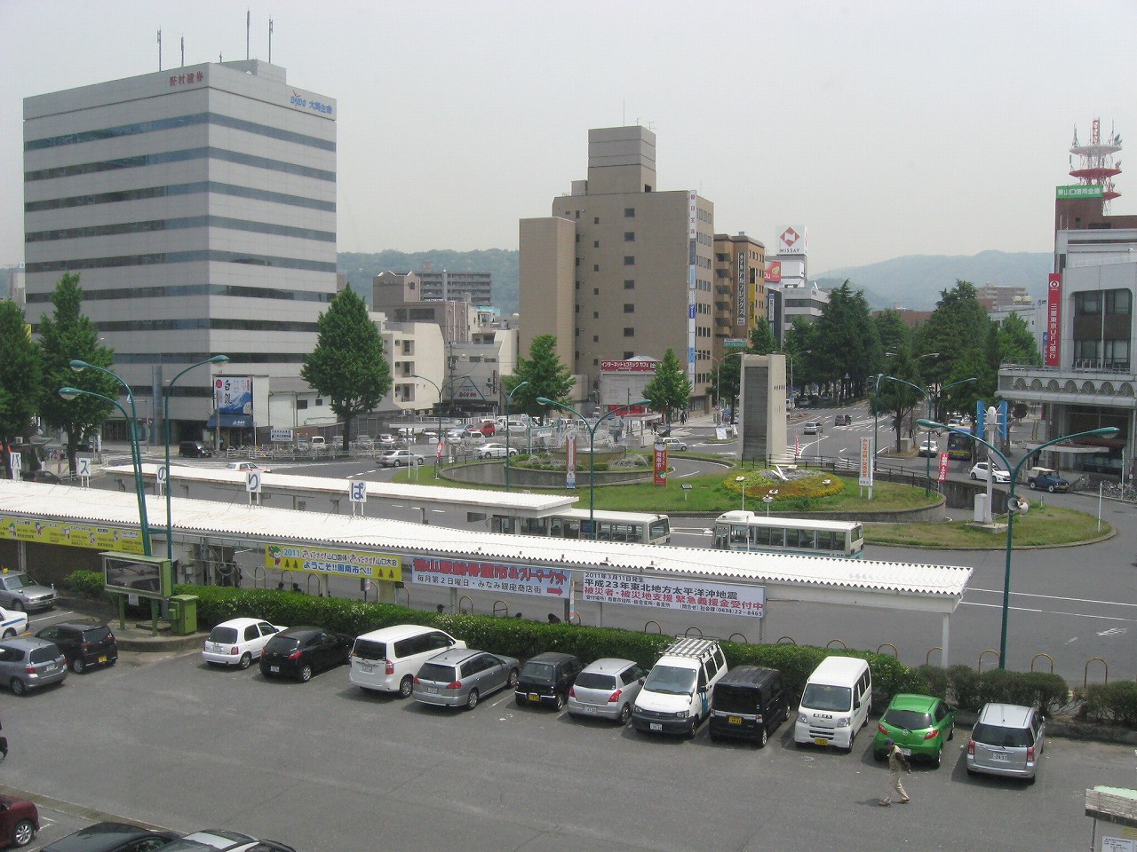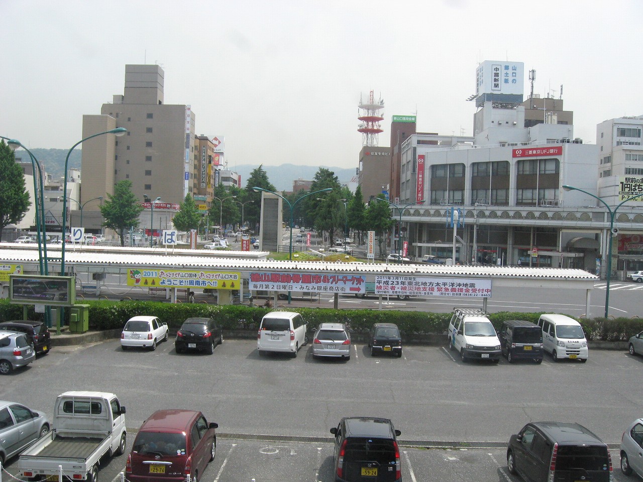 駅前は昔懐かしいスタイルで、改修前の福山駅のロータリーに似ている。そういえば、以前は福山と徳山がよくごっちゃになったなぁと。どちらも都市の構造は似ている気がする。