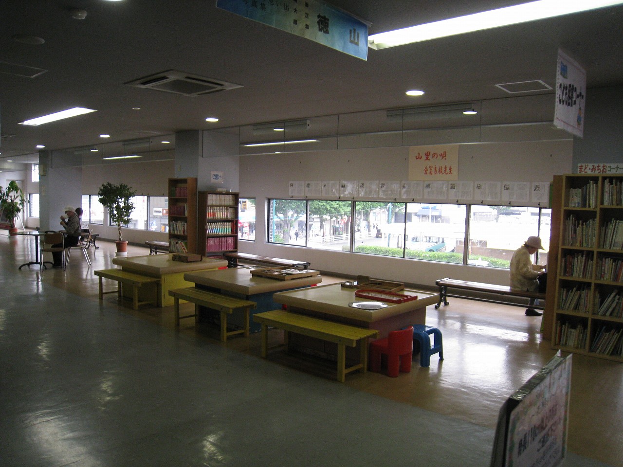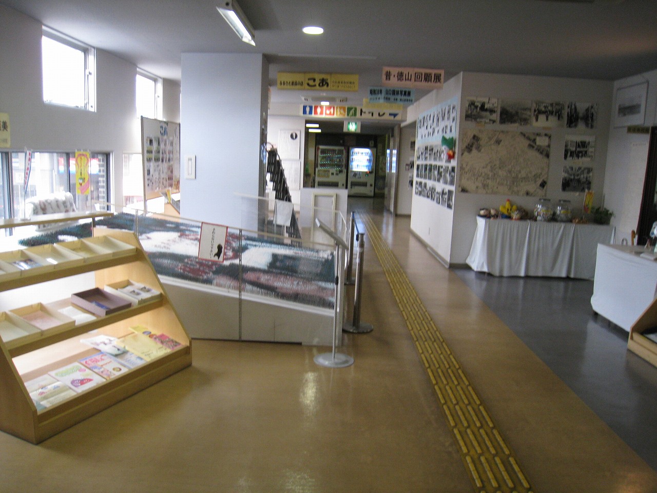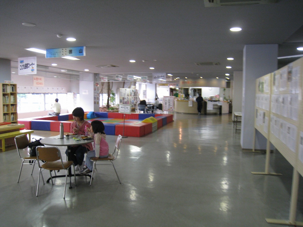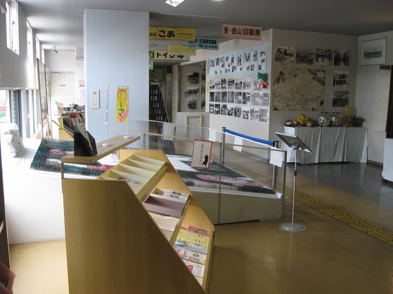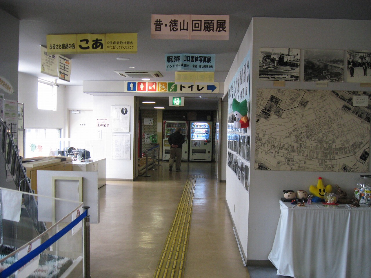 さ、駅ビルに上がってみよう。牡蠣色の壁タイルに臙脂色の床という60~70年代風のお化けのような階段を経てね2階へ。驚いたことに、そこは多くの徳山市民の集う、行政センターになっていた。