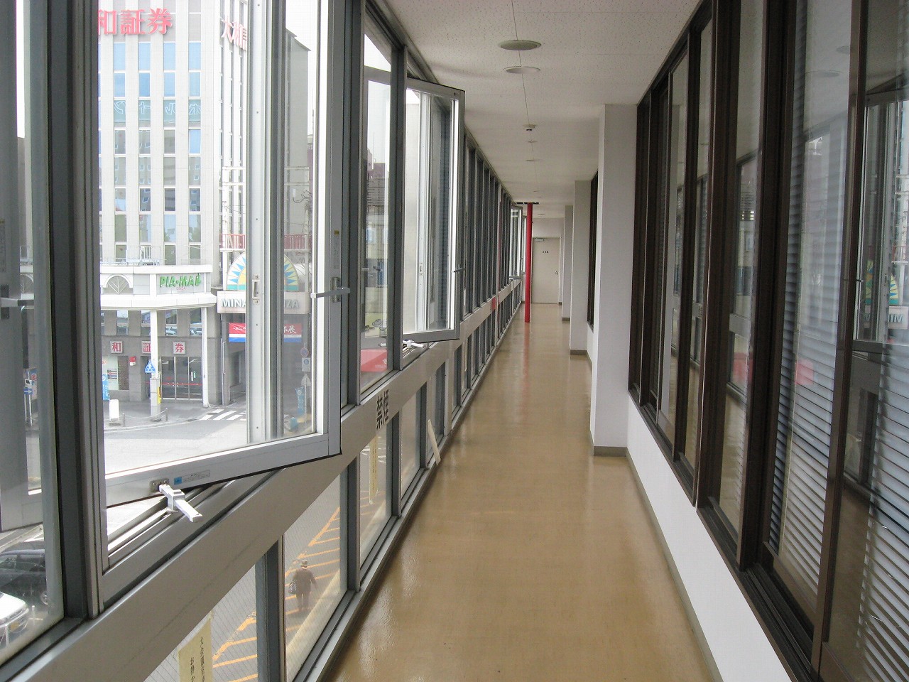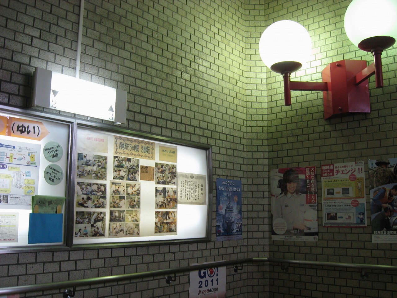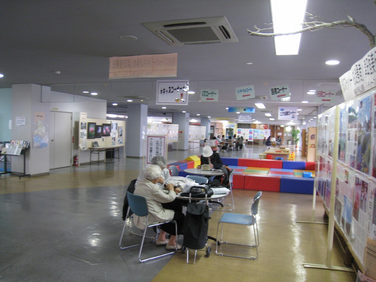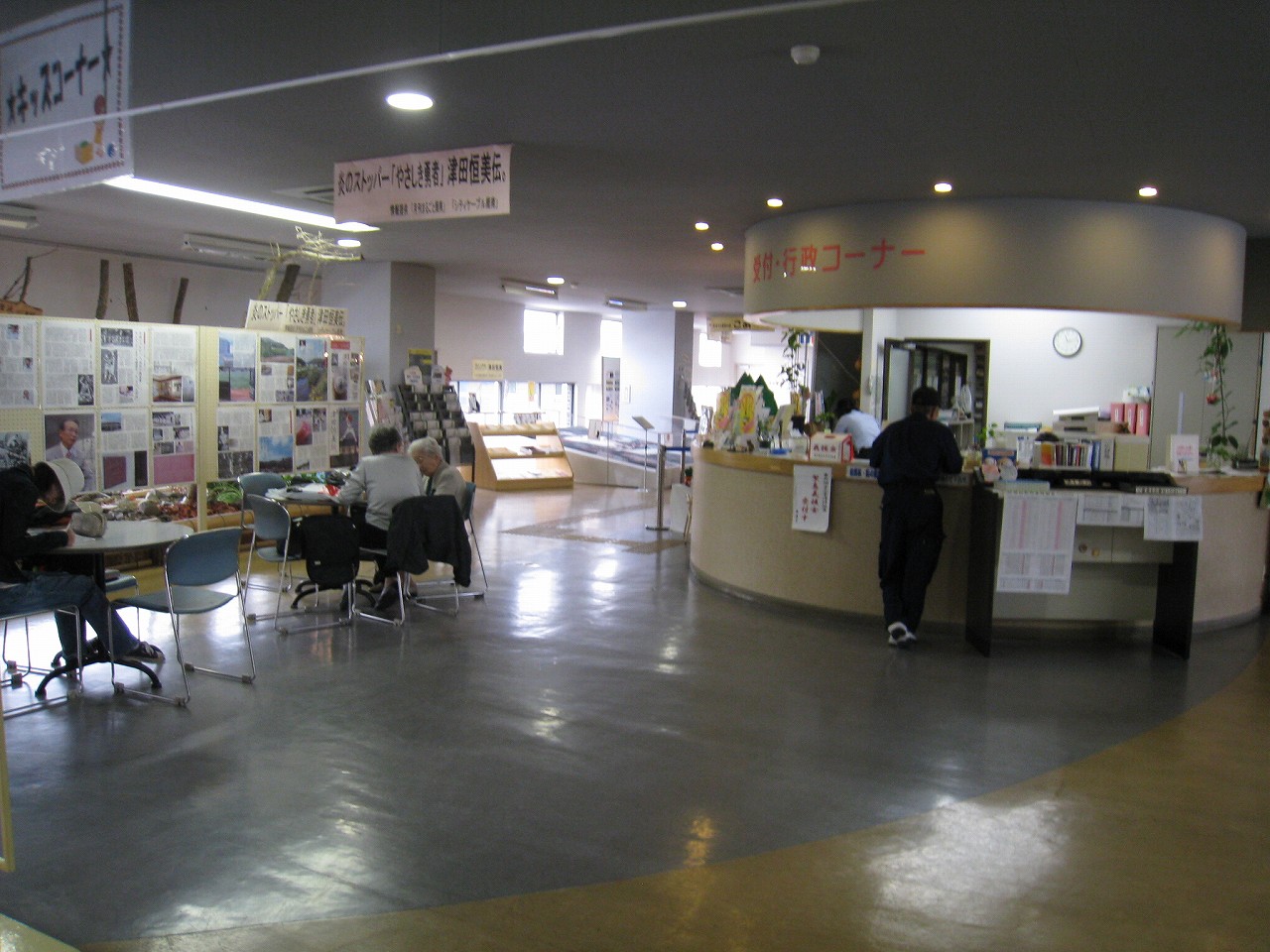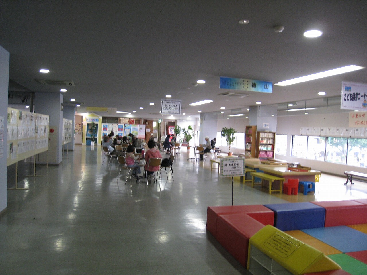 さ、駅ビルに上がってみよう。牡蠣色の壁タイルに臙脂色の床という60~70年代風のお化けのような階段を経てね2階へ。驚いたことに、そこは多くの徳山市民の集う、行政センターになっていた。
