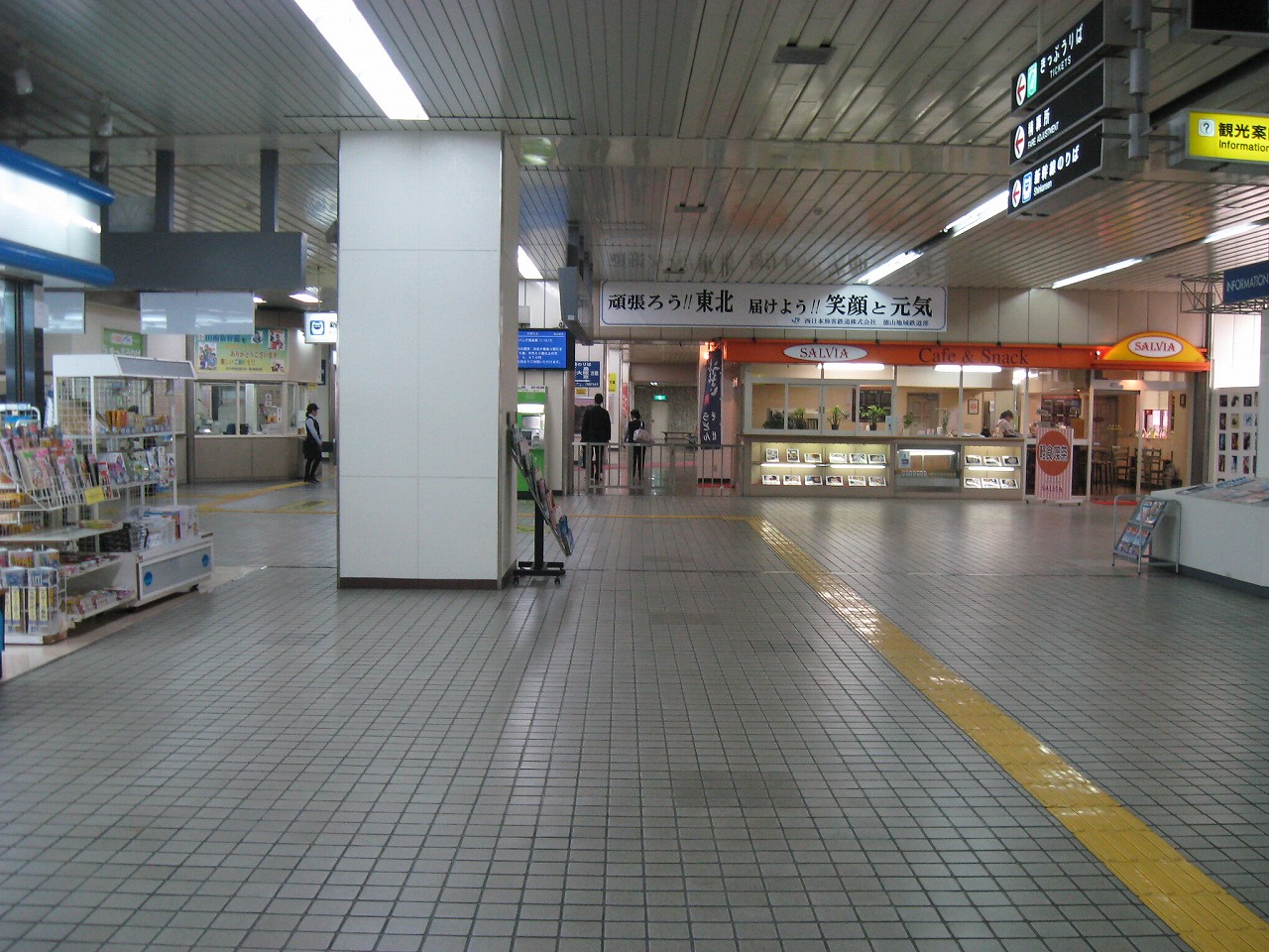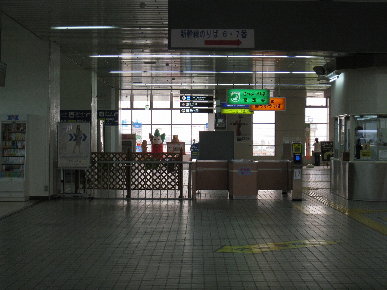 左手在来改札、右手新幹線乗り換え改札。とはいえ、こ新幹線の改札はここしかないので、改札外から新幹線に利用する場合でもいったん右の改札を通過することになってました。