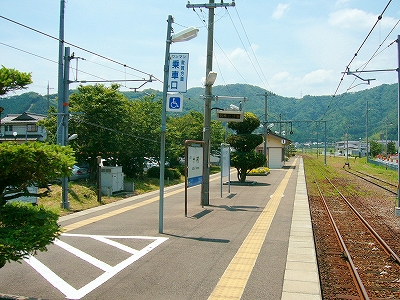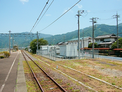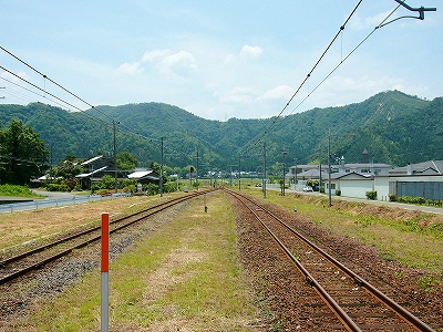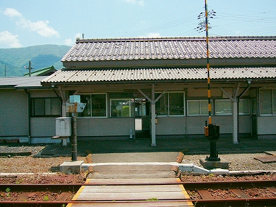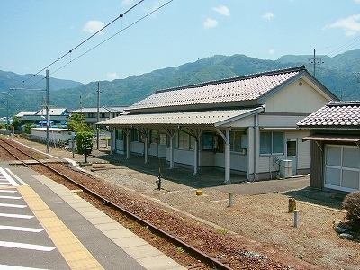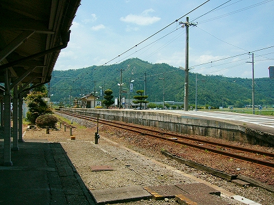 周囲はたいへん静かで、昔の木造家屋ばかりが建ち並ぶところだった。村の顔らしく右書きの戦前の商店が営んでいるほか、駅舎は大正6年とあったので、「もしやこの辺、戦前から基本的に変わっていないんじゃ…」と、顔が引きつる。