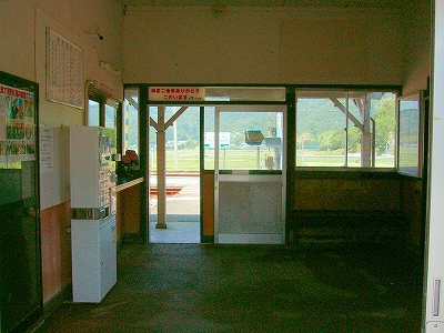 真っ白な駅舎に入ると、意想外にも最近まで町が窓口をやっていてサッシが入っていた。壁に付いた木の椅子は腰掛け程度しかなく、時代がかっていた。