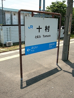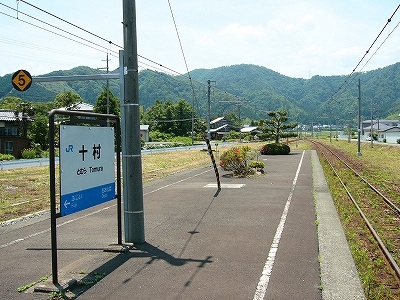 そういう風景の中、十村に着きかけた。乾いた自動の女声にて、「とむら。とむらです」そうホームだけの駅と同じ口調で案内していたが、窓の外には駅舎が確かに見え、汽車時代からある正統な駅だった。列車がY字ポイントを渡り、新しい車体が左右に揺らされる。