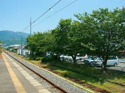 桜の葉影の駐車場に自動車がエンジン掛けたままずっと停まっていた。怪しいと思えたけど、冷房をかけてお昼休憩していんだろう。無人駅ではときには見られうる光景だ。