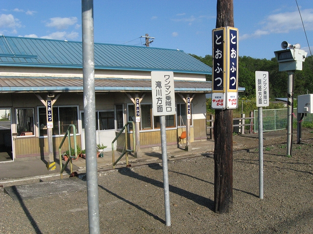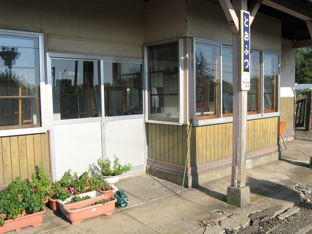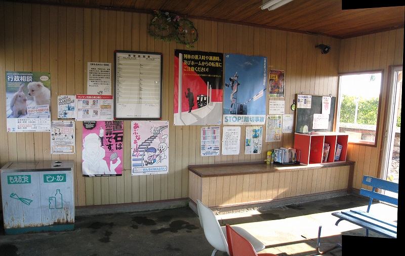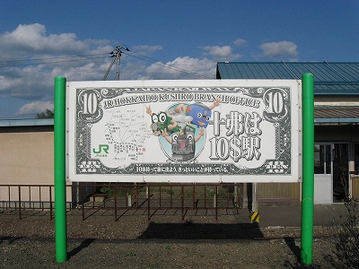時刻になると、一人初老の男性が駅舎の中で待っていた。中は本などが置いてあり、温かみが感じられるよう調えられている。もっとも大概置いてある本はいらないものであるし、読み出すとほんとに時間を忘れるので手にはあまりとらない。その男性、こちらを見つめて、煙草を吸ってもいいですか、と丁寧に切り出す。灰皿があるのを知っていたので、そういうところだというのはわかっていたし、ええどうぞ、と驚いたように返す。男性、ほっとしたように煙草を吸う。こんなタイプの人は札幌にはいまい。この後釧路でも体験するが、道東は少し人当たりが違う。十弗を十ドルと謳った看板もあり、小さな集落の駅の割にこんなユーモアで売り出しているのはちょっと不思議な感じだった。別な魂胆があるだけでもなく、ただそれだけ。しかしそれもよい、と思うのだが、北海道に来たわりにだいぶ暑い思いをして、飲み物もないし、ちょっと参りはじめていた。こんな秋霜烈日というか、よくこのトタン屋根の木造舎も耐えているなと思う。雪と陽射しを除けられる歴史の詰まった建物があるのは幸せなことだった。