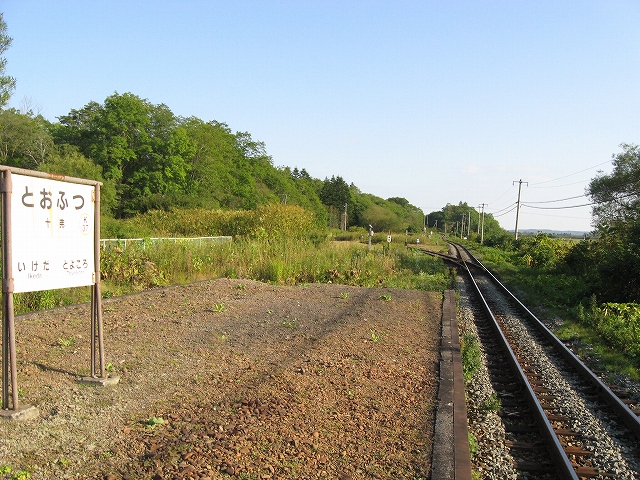 気動車はただガーと音を立てて大圃場を疾駆する。十勝川を渡ると乗換駅の池田からはそれに沿って海へ南下するから、ちょっと雰囲気が変わる。つまりよくある川にそった平地だ。こうして帯広を中心とする十勝平野とも別れることになった。この辺になって来るとちょっと胸が騒ぎはじめる。札幌圏からだいぶ遠く離れたな、と。むろん十弗の音からもそんな感情も沸き上がった。もう陽の光が濃くなってもろく寂しい色だった。