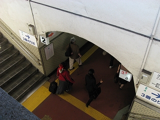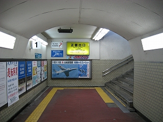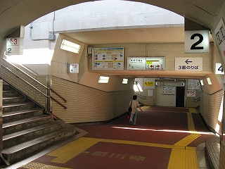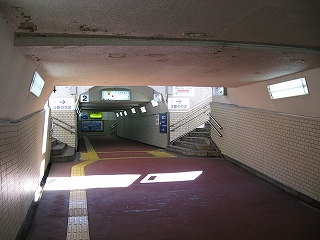 地下道階段を下り方に過ぎて。