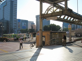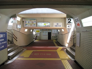 地鉄バスの3,4のりば。右手に別の地下道入口がある。