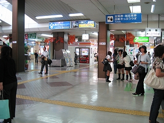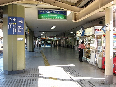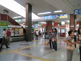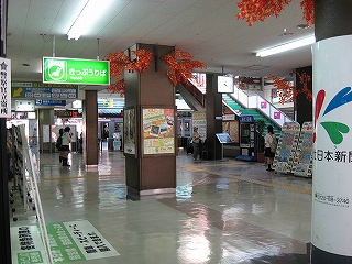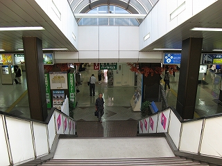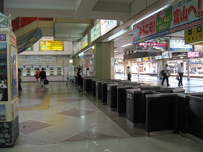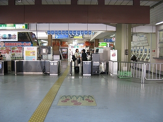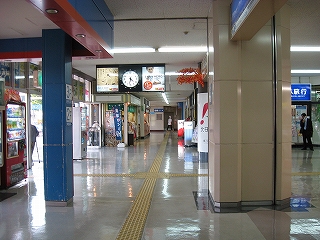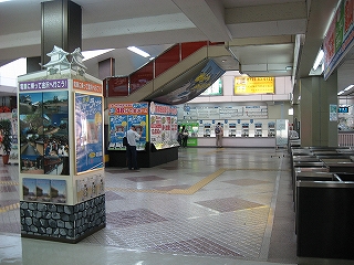 駅前から駅舎に入ったところから改札方を見た風景。
