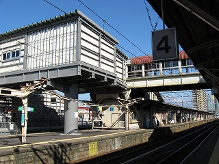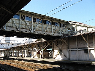 上り方。従来の跨線橋に新跨線橋を接続したためか上屋が取っ払われている。