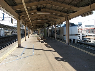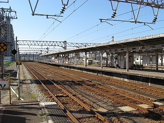 2・4番線ホーム中ほどにて。向こうが魚津・直江津(下り)方面。