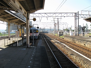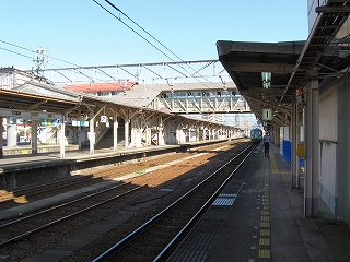 ここを出ると北陸本線は海に対して直角に進路を変える。