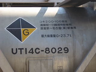 停まっていたタンク車より。速星駅と川崎貨物駅、または名古屋(貨)駅専用となっている。