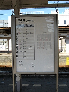 ここに高山線の時刻表。高山線の列車は3番線以外の1,4,6などの線にも入る。