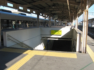 地下道入口。となりの2・4番線ホームと違ってここの階段にはホーム床面代わりとなる屋根があった。