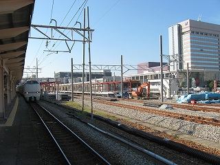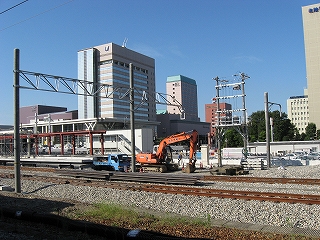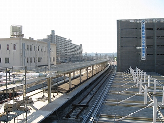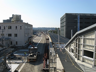 高岡・金沢方。仮設ホームの建設が進んでいる。