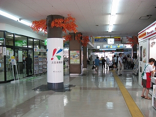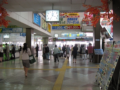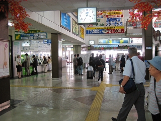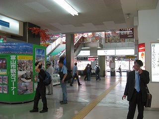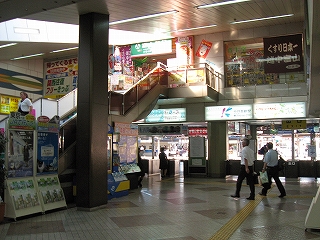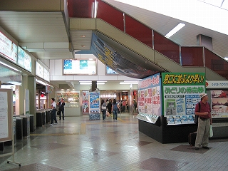 天井付近にもいろんな当地の案内や広告で駅舎内を彩っている。