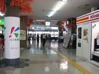 Kiosk脇にて、改札方。