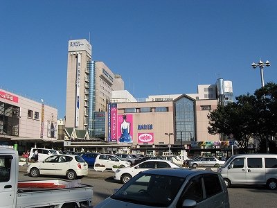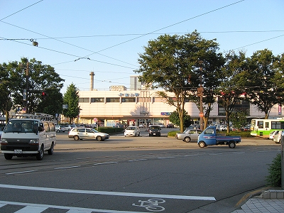 駅前側。北陸三県はこんな細長いビルの寄り添っていることが多い。