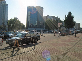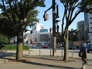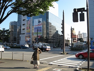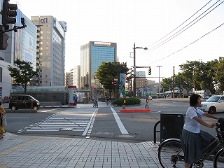 駅前の信号にて。