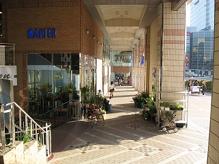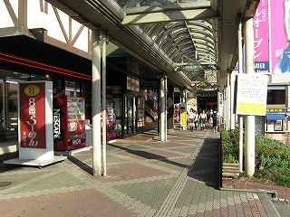 マリエビルの軒下、駅前方。