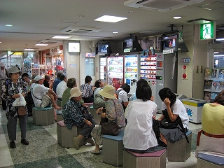 路線バスのりば。利用者がこんなにいるのかと思う。