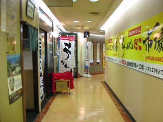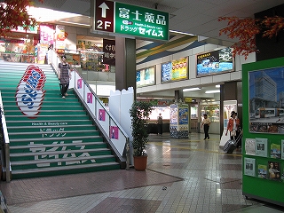 通路は階上のとやま特選街の派手な案内にぶつかる。
