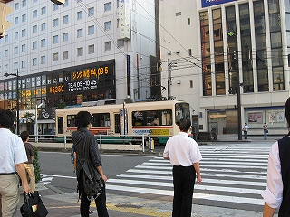 駅前広場を出たところを横に流れる大通りは交通量も半端ではなく、路面電車の小さな終着停留所もある。富山城に向かうまっすぐの通りを歩くと、ビジネスホテルがまさしく林のようで、どちらかというと、仕事の、実直の街という趣だった。ここ固有らしい無名のホテルもとても多い。