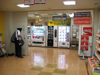 2階改札口手前にて。この駅、合わせるとかなり自販機が多い。