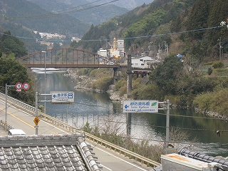 商店のほか高知銀行の支店もあったのに駅前の道を選択せず、跨線橋を使って国道に向かった。出口に豊永駅を愛する会と書いたドラム缶が逆さになっていた。すたれたホームと一緒にそんなこと忘れたといわんばかりに。沿道には食堂や資料館があり、けっこう時間を過ごせそうだ。豊永は大豊町の中でも重要なところのようだった。道路は山側の路肩がやたら広く、旧道跡のようだ。その先は橋で面白そうだったが、休憩したく、時間もあるのに引き返した。
