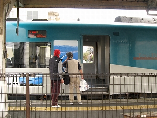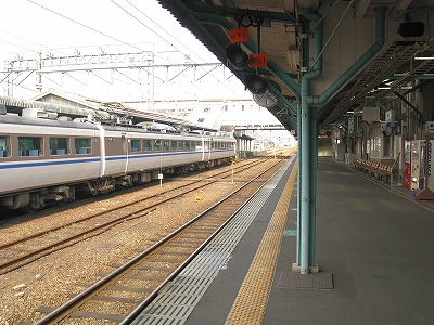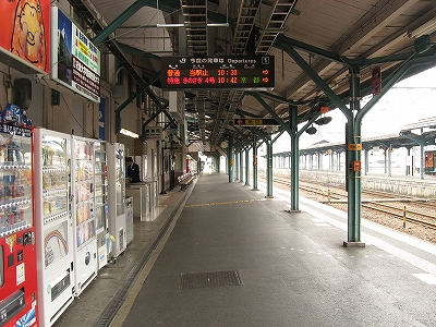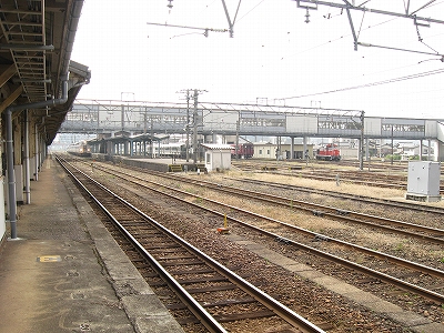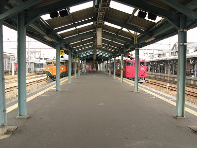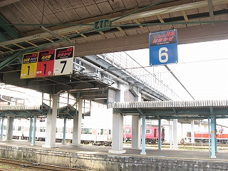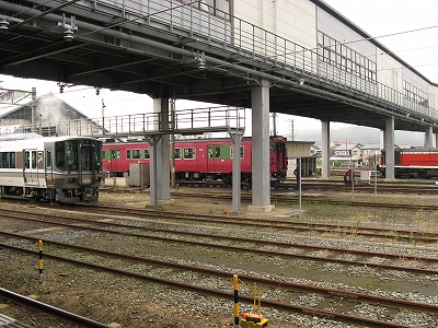 そういえばここにはときおり特急が入ってくる。しかし人模様はせわしくなくはなくゆったりとしており、列車が出るとホームでは黒い前掛けした人が、弁当などを積んだワゴンを転がしていく。遠くまで行きそうだが、残念なことにたいてい城崎止まりであるのは、電化がそこまでだからだった。方や播但線を経由してくる はまかぜは城崎を越えて、カニで有名な香住を経て浜坂まで行く。しかし本数が少ないからあまり見かけない。あそこまで行って鳥取まで行かないのは少し不思議な感じだ。