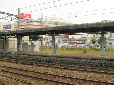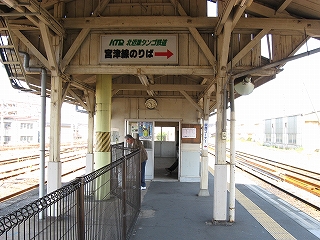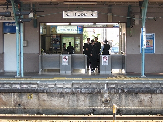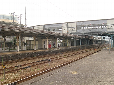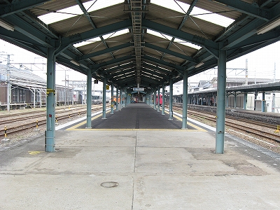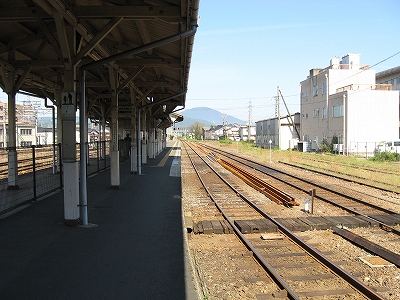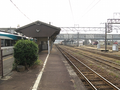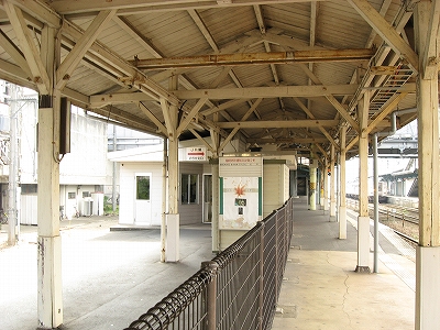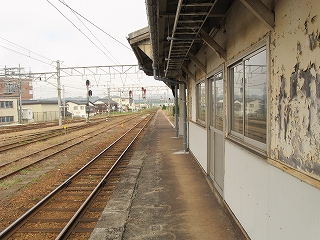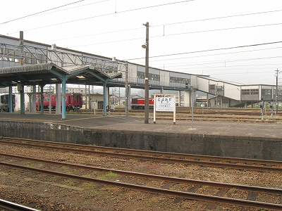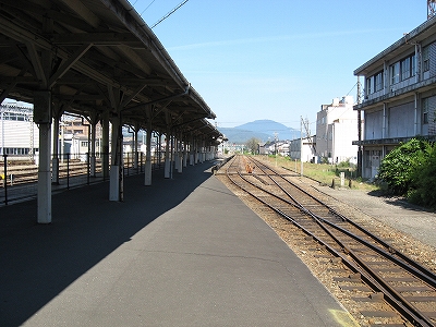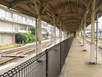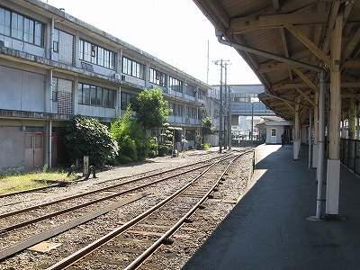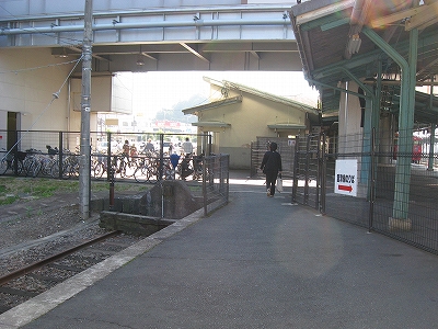 改札に行くまでに駅弁屋や喫茶店があるが、朝も落ち着く10時ごろだから人影はなく、旅の雰囲気は強いものの、それによってむやみに気分が昂ぶらされることはなかったのはちょうどよかった。その隙間を入っていくと、宮津線が現れ、忘れていたことに気づく。有人の小屋があり、完全に分けられているが、ご好意で入れてもらえてうれしかった。改修もしていない北近畿タンゴ鉄道の建物がレールに近接していて、そういえばここも鉄道の街かもしれないと思いかける。さっき見えた裏の操車場や豊岡鉄道部の古風なビル、そして社宅もあるのを考え合わせてだった。だがそうもいい切れる感じはちょっとない。