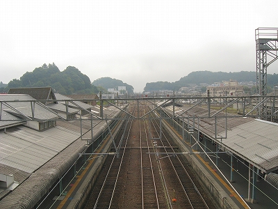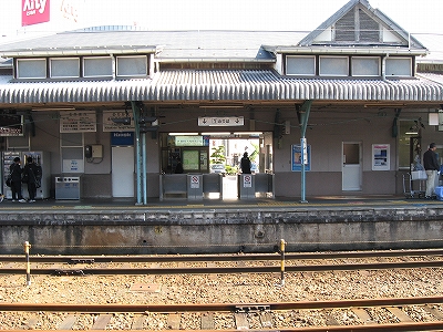 京都の方に引き返すつもりだったので、そうやってだらだらと構内にいたのだが、駅から出ると、急に晴れ出した。霧が引き裂かれ、あまりに眩しい太陽が大気を射る。空気はとても冷たく、しかし壮絶に爽やかで、その強烈な日差しがそこに同居した。山にいるかのようだ。黒タクシーのはびこる、小さな両翼を持つ堂々と太り気味の洋館風の駅舎のある駅前と、そこから始まる商店街が、一時代をきれいに保存した街として私を迎え入れた。