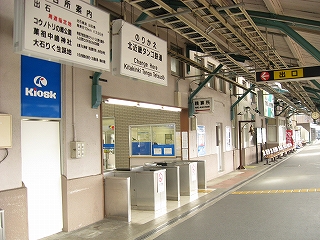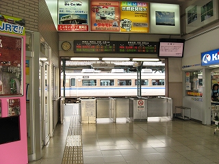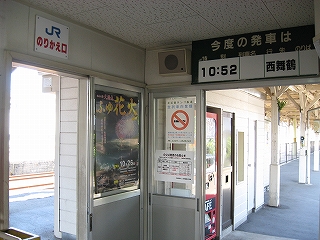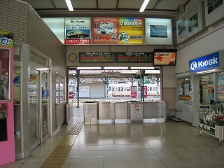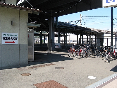 左、乗り換え口、右、宮津線乗り場。発車案内は