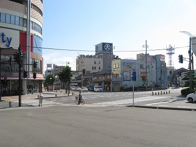 手持ちぶさたなタクシー運転手は外に出てひたすら雑談に興じている。路面のコンクリート打ちや石畳みが、この街に対するアスファルトのような一様な評価を跳ねのけた。だが古さばかりではなく、汽車時代とは対照的に民間の雄として商業ビルのガラスが日光を反射し、そこからつつましやかに穏やかな商店が立ち並んでいる。ふりさけ見れば大通りの突き当たりがこの豊岡駅となっていて、丹波の陰険な山深さを越えて現れる、清楚で調った一つの街のようで、道別れや鉄道の街という見方で片付けさせなかった。
