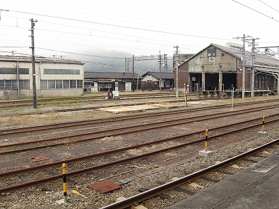 あの木造の建物の向こうにも線路がありヤードは広い。