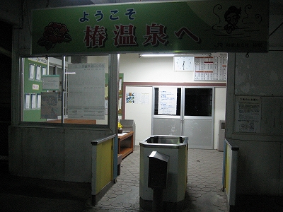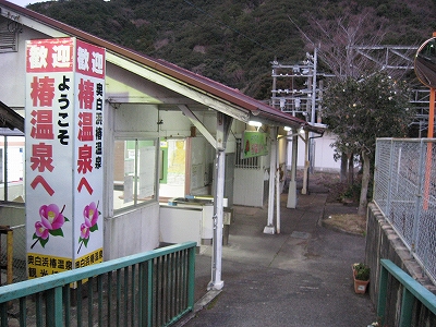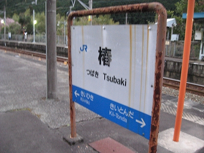 遠くの島のホームの真ん中にだけ、ぽつーんと屋根があって椿温泉とある。「まあ特急停車というのは確かだな。」 すぐ背後には山辺が裾を下ろしていた。こんなところ旅館のマイクロバスが来て、客をさーっと運び去るんだろう。気にも留められない駅である。