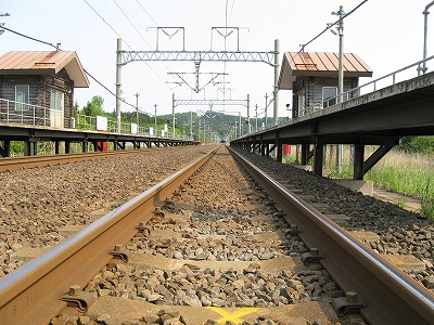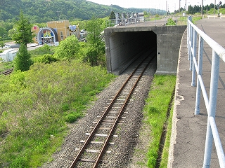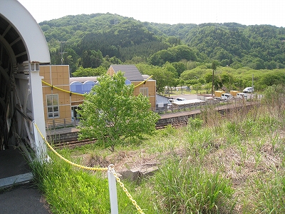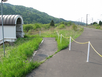 道路は駅の裏手にも回っていて、保線に携わる人たちの車が使うらしい。