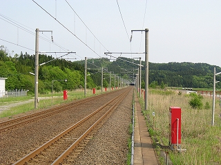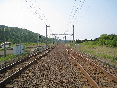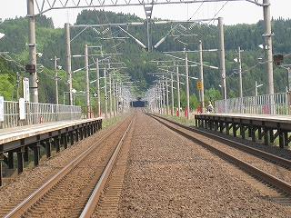 ホーム端にて。新中小国信号所、青森方。